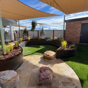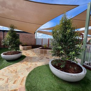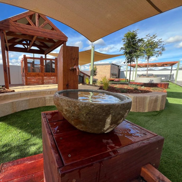 Crafted from stone and timber, this water sink provides an interactive and tactile play experience, encouraging children to explore, experiment, and enjoy hands-on waterplay.