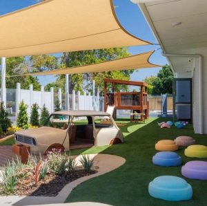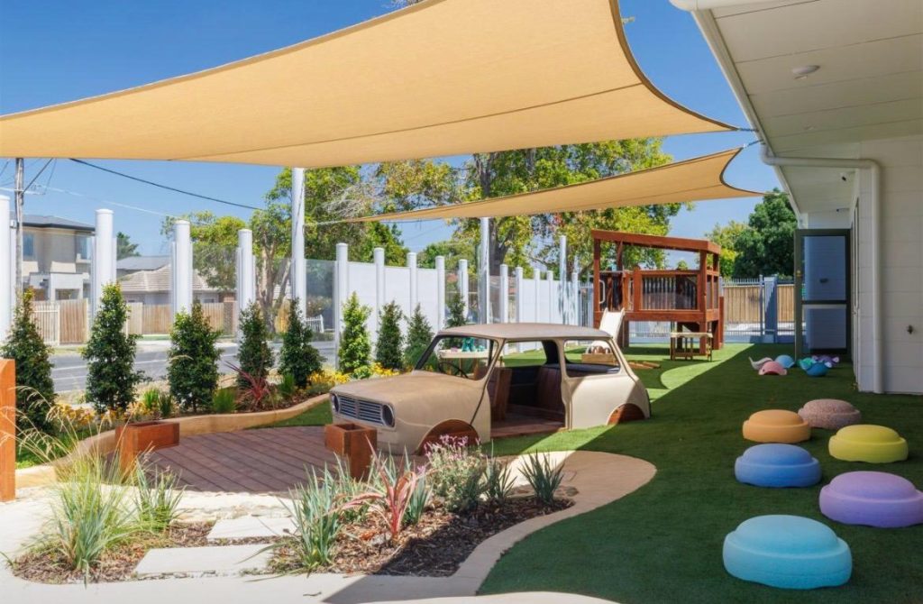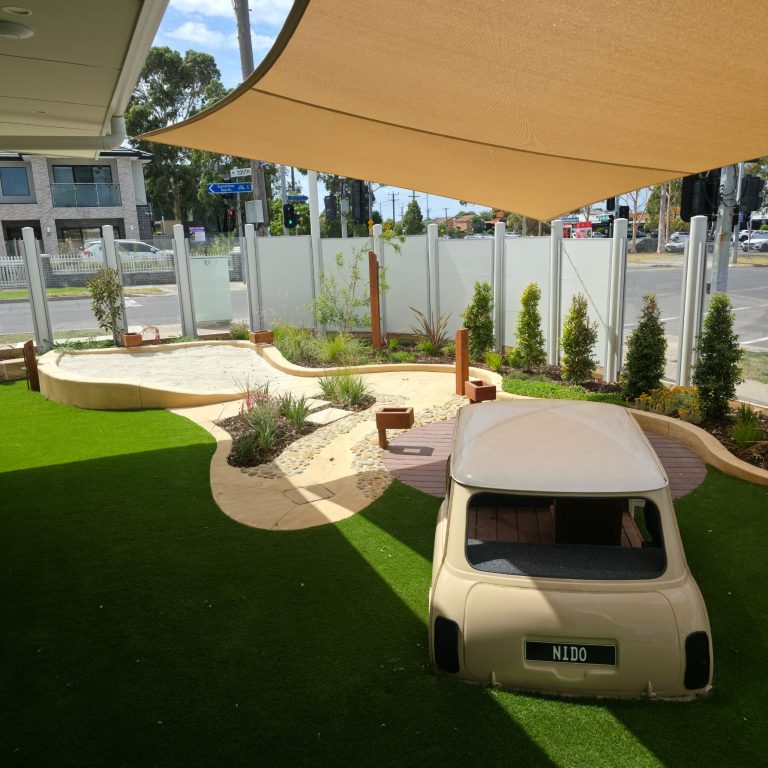 The refurbished vintage car, complete with Nido number plates, sits at the heart of the landscape, offering a safe and interactive play feature that sparks imagination and adventure for children.